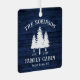 Personalisieren Sie Ihre Country Zuhause mit einem schönen rustikalen Thema 2-seitige Metall-Ornament, mit Ihrem Namen und "Family Cabin", Ranch, Hütte oder anderen Text zusammen mit seinem etablierten Datum und Ort, wenn gewünscht. Dieses individuelle Design zeichnet sich durch einen rustikalen Landstext aus, der eine weiße Silhouette von Kiefernbäumen auf Holzplanken in blauen Farbtönen aufweist. Eine charmante Ergänzung zu Ihrem Urlaub Zuhause, Ferien Weihnachten Baum Dekoration. Um mehr Designs wie dieses zu sehen, besuchen Sie bitte meinen Shop hier unter "Zazzle.com/Rustic_Charm". Danke.