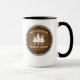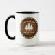 Eine stilvolle, rustikale Tasse mit ländlicher Thematik, mit Ihrem Namen und "Family Cabin", Ranch, Hütte oder anderen Texten, zusammen mit dem festgelegten Datum und der Lage, wenn gewünscht. Dieses individuelle Design besticht durch einen rustikalen Landstext mit einer weißen Silhouette von Kiefern auf einem runden Holzstollen. Um mehr Designs wie dieses zu sehen, besuchen Sie bitte meinen Shop hier unter "Zazzle.com/Rustic_Charm". Danke.