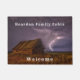 Die perfekte Tür für Ihr Land Zuhause oder Kabine. Foto einer Holzhütte, die mitten im Nirgendwo herunter läuft, wie ein Sturm einrollt und einen Blitz sendet.