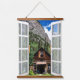 Rustikale Landschaft Bauernhof Wandteppich Mit Holzrahmen