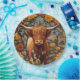 Rustikale Landschaft Hochland Kuh Sonnenblumen Pappteller