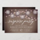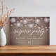 Unsere festliche Überraschung-Party Einladung bietet einen dunkelkraft-Hintergrund, der mit Streichern aus glänzenden Weißlichtern und leuchtenden Papierlaternen durchbrochen ist, und ein "Überraschungs-Party" in schicken Kalligraphieskripttypografie. Persönlich gestalten Sie Ihre Überraschungsfeierlichkeiten in Weiß. Sie können für jede Gelegenheit, wie Geburtstagsfeiern oder Jubiläumsfeiern, genutzt werden. Ein elegantes Design in dunkler Marine und Weiß für elegante Events.
