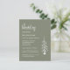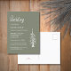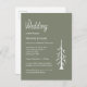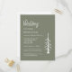 Rustikale Kiefernbaumhochzeit Einladung Postkarte, mit einem einfachen Typografie-Design auf einem schlauen grünen Hintergrund. Mit weißen, anpassbaren Buchstaben fügen Sie Ihre eigenen Informationen hinzu. Ideal, um Ihren besonderen Tag mit einem lässigen Boho Stil zu planen.