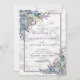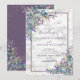 Mit diesem trendigen Design schaffen Sie die perfekte Hochzeitseinladung mit einem lila Lavendel lila und staubigen blauen botanischen Grün und goldblühenden botanischen Elementen, Imitaten goldenen Staubecken Eckelementen, Lavendelrahmen und Imitaten karrera Marmorboden. Kontaktieren Sie Designer für passende Produkte. Copyright Elegant Invites, alle Rechte vorbehalten.