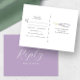 Diese UAWG postcard ist elegant in Verbindung mit unserer Aquarelllavender Hochzeitskunst gestaltet und ist die wahre Verkörperung einer botanischen Romantik. Es zeigt minimalistische Sprigs von Lavendel-Blume. Diese Postkarte bietet den Gästen einen dedizierten Platz, um ihre Anwesenheitsrate und ihre Auswahl an Speisen zu bestätigen. Das Wort "Antwort" ist Set in eleganter Schriftzypografie auf einem lila Hintergrund. Ideal für rustikale Hochzeiten und Gartenfeiern, ist dieses Stück ein Zeugnis der einzigartigen Kunst von Victoria Grigaliunas von Do Tell A Belle. Entdecken Sie passende Schreibwaren und mehr unter www.zazzle.com/dotellabelle.
