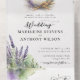 Eine elegante, moderne Aquarellillustrierung von Lavendel-Pflanze und einem Lava- und Weizenschurz-Monogramm-Wappen schmücken diesen Frühlingssommer in einer Hochzeitseinladung mit einem rustikalen Lavendel-Thema. Eine elegante, moderne Einladung zu einer Hochzeit im Freien oder zu einem romantischen Ambiente ist das Siegel und das Vergnügen. Maßgeschneidert für Braut, die Lavendel, Boho-Designs, rustikale Themen, romantische Gartenthemen Party und lila, grüne und Lavendelfarben.