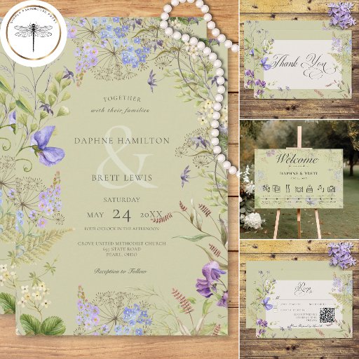 Die rustikale Hochzeitskarte, die so konzipiert wurde, dass sie das Wesentliche Ihres besonderen Tages mit seinem bezaubernden Design einfängt. Stellen Sie sich eine sanfte, grüne Kulisse vor, in der Sie einen ruhigen und romantischen Ton für Ihre Feier festlegen können. Die Einladung ist mit einem zarten Rahmen aus ätherischen Wildblumen in lila, lavendelfarbenen, cremefarbenen und salzgrünen Tönen verziert, das an eine malerische Wiese erinnert. Diese Einladung verbindet rustikalen Charme mit eleganter Einfachheit. Die sanften Farbtöne und die feinen Blumendetails schaffen ein charmantes und einladendes Ambiente, das Ihre Gäste vom Empfang an bezaubert. Die Kombination des sanften grünen Hintergrundes und der bezaubernden Wildblumen verleiht dem Ganzen ein Gefühl von Ruhe und Naturschönheit und schafft so die Bühne für ein wirklich magisches Fest. Ob Sie eine gemütliche Ansammlung auf dem Land planen oder eine große Freiluftveranstaltung planen, diese rustikale Hochzeitseinladung wird Ihr Wunschthema perfekt ergänzen. Es ist die ideale Wahl für Paare, die eine Touch rustikaler Eleganz suchen, die Schönheit der Natur genießen und gleichzeitig ihre Liebe feiern möchten. Es ist Teil der Rustic Lavender & Sage Wildblumen Sage Suite, die von Simply Farmhouse Press kreiert wurde.
