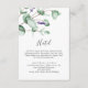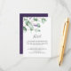 Diese rustikale Lavendel- und Eukalyptus-Hotelumschließkarte eignet sich perfekt für eine einfache und elegante Hochzeit. Das Blumendesign zeichnet sich durch Aquarelleukalyptus-Blätter und Grünpflanzen mit lila Wildblumen aus.