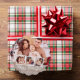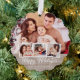 Rustikale Leinen & Happy Holidays Script Multiphot Ornament Karte