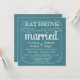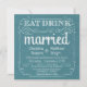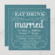 Essen Sie, trinken Sie, und seien Sie verheiratet -- Land-Hochzeitseinladungen der Vintagen Art rustikale -- Wirble, gelockte Rollen und Altmode Typografie auf tropischem aquamarinem Türkisozeanblau-Leinwandhintergrund. Fügen Sie Ihre Namen und wedding Info in dieser bedienungsfreundlichen Schablone hinzu. Elegant aber Spaß und wunderliches, kann Tafelart-Skriptschreiben für Ihr formales oder halb-formales Retro Hochzeitsthema geändert werden. Lässige moderne Art ist für trendy zeitgenössische Hochzeiten mit einer Spaß-Touch des hoch entwickelten Charmes für die traditionelle Braut und den Bräutigam perfekt. Treten Sie mit uns bitte für Hilfe bei der Kundenbezogenheit in Verbindung, wenn Sie zusätzlichen Raum für Ihre Hochzeitsdetails benötigen. Andere Größen und Tafelarten verfügbar. ANMERKUNG: Diese Konzeption des Produkts wird für nur quadratische Karten gegründet -- erfordert Portozuschlag.