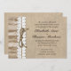 Diese kundenspezifische Hochzeitseinladung ist für Ihre Vintage oder rustikale themed Hochzeit perfekt. Diese Einladung kennzeichnet einen Leinwandblick Hintergrund mit einem Streifen des Scheunenholzes auf der links Seite. Zur Krawatte alle twine sie zusammen, ein Streifen der Spitzes und Jutefaser komplett den Blick. ANMERKUNG - dieses ist ein hochwertiges Druckbild der Spitzes, der Leinwand, des Drahtes u. der Perlen; die Einladung enthält nicht tatsächliche Spitze, Leinwand oder Schnur. Danke!