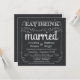 Essen Sie, trinken Sie, und seien Sie verheiratet -- Land-Hochzeitseinladungen der Vintagen Art rustikale -- Wirble, gelockte Rollen und Altmode Typografie auf einzigartiger Holzkohle schwärzen Leinwandhintergrund. Fügen Sie Ihre Namen und wedding Info in dieser bedienungsfreundlichen Schablone hinzu. Elegant aber Spaß und wunderliches, kann Tafelart-Skriptschreiben für Ihr formales oder halb-formales Retro Hochzeitsthema geändert werden. Lässige moderne Art ist für trendy zeitgenössische Hochzeiten mit einer Spaß-Touch des hoch entwickelten Charmes für die traditionelle Braut und den Bräutigam perfekt. Treten Sie mit uns bitte für Hilfe bei der Kundenbezogenheit in Verbindung, wenn Sie zusätzlichen Raum für Ihre Hochzeitsdetails benötigen. Andere Größen und Tafelarten verfügbar, zusammen mit koordinierenarten für Verlobungs-Party und Paardusche. ANMERKUNG: Diese Konzeption des Produkts wird für nur quadratische Karten gegründet -- erfordert Portozuschlag.
