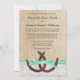Rustikale Landhochzeitseinladungen. Einen Leinwandhintergrund mit weißer Spitze kennzeichnend und, mint Imitat grünes Band mit einem Paar Vintagen Hufeisen. Entwürfe sind Druckillustrationen/Grafiken - NICHT TATSÄCHLICHES BAND. Vervollkommnen Sie für eine Westernhochzeit oder Scheunenhochzeit.
