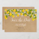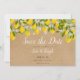 Diese botanische Zitronenblüte Save the Date ein elegantes Drehbuch Save the Date über Ihren Details Set in schicke Typografie auf einem rustikalen Krafthintergrund. Entwickelt von Thisisnotme©
