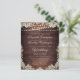 Rustikale Hochzeitseinladungen auf leichtgewichtigen Papieren, ideal für konservative Budgets und handgefertigte Übergabe an die Gäste. Schönes dunkles Landholz mit Saitenlampen und Elfenbeincreme aus weißer Spitze mit eleganter Schriftzeichen-Typografie. Der gesamte Text kann bearbeitet werden, um den Text an Ihre Bedürfnisse anzupassen. Wenden Sie sich an den Designer über den Zazzle Chat oder makeitaboutyoustore@gmail.com , wenn Sie dieses Design modifizieren möchten, an einem anderen Produkt oder an einem koordinierenden Artikel.