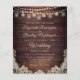 Rustikale Hochzeitseinladungen auf leichtgewichtigen Papieren, ideal für konservative Budgets und handgefertigte Übergabe an die Gäste. Schönes dunkles Landholz mit Saitenleuchten, Party-Laternen und Maurerkrümeln und mit Elfenbein-Creme-Spitze mit eleganter Schrift-Typografie. Der gesamte Text kann bearbeitet werden, um den Text an Ihre Bedürfnisse anzupassen. Wenden Sie sich an den Designer über den Zazzle Chat oder makeitaboutyoustore@gmail.com , wenn Sie dieses Design modifizieren möchten, an einem anderen Produkt oder an einem koordinierenden Artikel.
