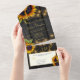Elegante, schicke Hochzeit im Sommer oder Herbst in einem einladenden Template auf dunkelbraunem Scheunenholz mit einem wunderschönen Sonnenblumenstrauß und Streichern aus bunten Lichtern. Füllen Sie Ihre Informationen in den Spots aus, ++++++++++++++++++++ Die Einladung ist für elegante Sommer- oder Herbsthochzeiten geeignet.
