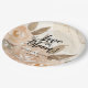 Liebe in Bloom!, Ihre Namen und Ihr Hochzeitsdatum werden auf einer Collage aus eleganten pfirsichfarbenen, blassen Terrakotta, silberfarbenen Aquarellfarben-Blume und eleganten braunen Blätter auf diesen Tellern gedruckt. Ideal für Hochzeiten, Polterabende oder andere Gelegenheiten. PASSENDE Artikel in unserer Sammlung.