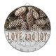 Rustikale Liebe und Joy Pine Cone Dartscheibe