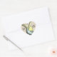 Personalisieren Sie diese eleganten, herzförmigen Aufkleber mit den Monogrammen des Ehepaares und verwenden Sie sie zum Siegel von Umschlägen, Gastgeschenk Taschen, Platzkarten & mehr! Ein originelles digitales Bild eines Paares von "kissy-face" Liebesvögeln (1 Zitronengelb, 1 Blassblau), das an ein Holzkohle- & Aquarellbild auf dem Teebecher-Pergament erinnert.
