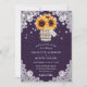 Rustikale lila Sonnenblumen-Hochzeitseinladungen mit Sonnenblumen und Babyatebouquet in einem Maurerkirsch auf einem Stallholz und Spitzen-Hintergrund. Perfektes Kartendesign für die Einladung Ihrer Gäste zu Ihrem lila rustikalen Hochzeitsfest Party inspiriert von Sonnenblumen. Einfach zu personalisieren Karte.