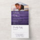 Rustikale Lila Foto-Hochzeit aus Holz All In One Einladung