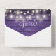 Alles in einer Hochzeitseinladung mit hübschen Saitenlichtern, Ihrem Foto, Monogramm-Initialen und eleganter moderner minimalistischer Typografie auf rustikalem lila Holzpaneelhintergrund. Die Einladung enthält eine perforierte RSVP-Karte, die für Sie individuell adressiert oder links als leere Adresse für die Handschrift der Adressdaten Ihres Gastes verwendet werden kann. Entwickelt von Thisisnotme©