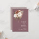 Rustikal Lila mit Peach Blume Hochzeit Speichern Sie die Date Card. Freuen Sie sich auf den stilvollen Hochzeitstag mit der elegant gestalteten Hochzeitskarte, die Sie mit einer wunderschönen Mischung aus pfirsichfarbenen und olivgrünen Blume auf lila Hintergrund rette. Diese Hochzeitskarte rette-the-date mit einem wunderschönen, blumengeschmückten und botanischen Design, mit rustikalen und bohenhaften Blicken, perfekt für Ihre Hochzeit im blühenden oder boho-chischen Stil. Die minimalistische und moderne Einrichtung verleiht dem üppig pfirsichfarbenen, eleganten Set der Blumenarrangements auf einem lila Hintergrund ein besonderes Augenmerk. Diese Hochzeitskarte rette den Ton für eine wunderschöne Hochzeitslandschaft, umgeben von entweder lila, oder lila Hochzeitsdekoration und Pfirsich und cremefarbenen Wildblumen. Eine perfekte Ergänzung zu jeder botanischen oder rustikalen Feier.