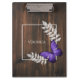 Zieh Notizen und Erinnerungen auf einer sicheren Oberfläche mit einer rustikalen Lila Schmetterling Personalisierten Zwischenablage. Das Clipboard-Design besticht durch einen lebendigen Schmetterling, der auf zartem Blattwerk ruht und einen Platz bietet, um seinen Namen vor einem rustikalen Holzhintergrund zu verleihen. Zusätzliche Geschenkartikel in diesem Design sowie eine Vielzahl von Farben.