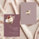 Rustikal Lila mit Peach Blume Hochzeit Dankeschön Karte. Mit dieser elegant gestalteten Hochzeitskarte laden Sie Ihre Gäste stilvoll zu einem Hochzeitstag ein, der sich durch eine wunderschöne Mischung aus pfirsichgrünen und olivgrünen Blume auf einem lila Hintergrund auszeichnet. Diese Hochzeitskarte hat ein wunderschönes blumengeschmücktes und botanisches Design, mit rustikalen und bohenhaften Farben, perfekt für Ihre Hochzeit im blühenden oder boho-chischen Stil. Die minimalistische und moderne Einrichtung verleiht dem üppig pfirsichfarbenen, eleganten Set der Blumenarrangements auf einem lila Hintergrund ein besonderes Augenmerk. Diese Hochzeitskarte Set den Ton für eine wunderschöne Hochzeitslandschaft, umgeben von entweder lila, oder lila Hochzeitsdekoration und Pfirsich und cremefarbenen Wildblumen. Eine perfekte Ergänzung zu jeder botanischen oder rustikalen Feier.