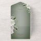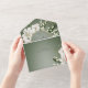 MIT ODER OHNE QR-CODE ODER ABENDESWÄHLUNGSOPTIONEN. Diese Hochzeitseinladung zeichnet sich durch ein visuell faszinierendes Design aus, beginnend mit einem dunkelgrünen Hintergrund, der einen eleganten und raffinierten Ton Set. Überlappend auf diesem Hintergrund ist ein subtiler weißer Weichzeichner, der dem Gesamtbild eine Touch von Weichheit und Tiefe verleiht. Die Einladung umschließt ein zartes goldgelbes ovales Bild, das aus weißen Lilien und Lilien der Blume des Tales besteht. Diese anmutigen Blüten sind sehr detailliert, zeigen ihre natürliche Schönheit und stellen Reinheit und neue Anfänge dar. Die Lilien und Lilien der Blume des Tals verbinden sich mit üppiger Vegetation und schaffen einen zauberhaften Rahmen, der Romantik und Charme ausstrahlt. Die Kombination aus dunkelweiss grünem Hintergrund, weißem Weichzeichner und weißem Blumenrahmen schafft eine harmonische und visuell auffällige Komposition. Dieses Hochzeitseinladungs-Design verspricht, die Aufmerksamkeit der Empfänger zu erlangen und die Eleganz und Schönheit der bevorstehenden Feier zu vermitteln. Erstellt von der einfachen Farmhouse Press.