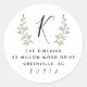Rücksendeadresse-Aufkleber personalisiert mit dem Familienmonogramm und der Adresse mit handgezeichneten Lorbeerzweigen mit Beerenakzenten und modernem Kalligrafieschreiben.