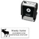 Erstellen Sie Ihre eigene personalisierte, rustikale Rücksendeadresse Gummi Briefmarke. Auf verlassen ist eine schwarze Silhouette eines Elchs und seiner Geweihe. Auf der rechten Seite ist mit Monogramm Name auf der obersten Zeile in primitiven, gestempelten Look Briefe mit Rücksendeadresse unten in leicht lesbarem Schriftart. Coole personalisierte, rustikale Rücksendeadressen-Aufkleber für Naturliebhaber und Jäger. Einzigartiges Geschenk für die Hauswärmung.