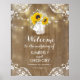 Sonnenblumen, Stallholz, Spitzen, Lichter an der Saite und Maurerkirsche mit Baby-Atem-Blume Hochzeitsempfang Plakat