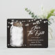 Rustikale Hochzeit bewahrt die Dattelkarte mit einem Maurerkirsch und einem mit Saitenleuchten geschmückten Stallholzhintergrund. Einfach personalisieren Sie diese romantische rustikale Hochzeit speichern Sie das Datum online. Matching Artikel zur Ergänzung dieser rustikalen Landhochzeit Save the Date.
