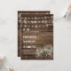 Stellen Sie Ihre Gäste Ihrer rustikalen, waldreichen Hochzeit mit unserer einzigartigen Hochzeitseinladung vor, die mit einem Holzkornhintergrund und einer Glaskeramik-Illustration versehen ist. Das Design wird durch Lichterketten ergänzt, die eine warme und intime Touch verleihen. Die Einladung enthält Text auf beiden Seiten und ist somit ideal für alle wichtigen Details Ihres besonderen Tages. Wir haben auch die Möglichkeit, einen QR-Code auf der Rückseite der Einladung hinzuzufügen, um Ihren Gästen einen einfachen Zugang zu zusätzlichen Informationen oder einem digitalen UAWG zu ermöglichen. Wir bieten Ihnen sowohl günstige als auch Premium-Papieroptionen, und Sie können sogar einen digitalen Download dieses Designs für DIY Zuhause drucken oder als digitale Einladung per E-Mail oder SMS bestellen. Fügen Sie Ihrer Hochzeit eine Touch rustikalen Charmes mit diesem schönen Einladungs-Design hinzu. Diese rustikale Holzaussehen Hochzeitseinladung ist perfekt für eine Hochzeit mit einem Holz-, Freien- oder Scheunenthema. Die Glaskeramikillustrierung und die Lichterketten verleihen der Einladung eine charmante Touch und eignen sich für alle Jahreszeiten. Ob Herbst-, Winter- oder Herbsthochzeit - diese Einladung Set den Ton für Ihren besonderen Tag und ist ein idealer Treffpunkt für eine rustikale, landschaftliche oder Vintage Hochzeit.