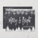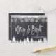 Elegantes Design mit einer eleganten, modernen Typografie von "Merry and Bright" auf einem Kalkboard-Hintergrund mit Schneeflocken und Bäumen. Verwenden Sie das Tool Anpassen, um Ihre Informationen, Nachrichten hinzuzufügen. Mehr Ideen in meiner Weihnachts-Foto-Sammlung.