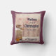 Personalisiertes Hochzeitskissen mit einem rustikalen Landmotiv. Eine alte rostende Milch kann mit einer hübschen orangefarbenen Blume an der Seite. Weiße und verblasste rote Pupien im Hintergrund Set vor einem schwachen Holzpaneel. Personalisieren Sie mit den Namen des Ehepaares und dem Hochzeitsdatum. Glücklicherweise immer, nachdem sie am Boden geschrieben haben.