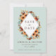 Elegantes Hochzeitsdesign Save the Date mit wunderschönen Aquarellfarben-Blume und Blätter auf einem minzgrünen Hintergrund.