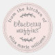 Rustikale und moderne, individuell anpassbare hausgemachte Backwaren Heidelbeermuffins Aufkleber mit dem Text aus der Küche, Heidelbeeren Muffins und Ihr Name in modernem Drehbuch auf pastellrosa Hintergrund. Passen Sie diesen personalisierten Backgeschenkaufkleber einfach mit Ihrem Text, dem Produktnamen und Ihrem Namen an. Exklusiv für Sie entworfen von Happy Dolphin Studio. Wenn Sie Hilfe oder passende Produkte benötigen, kontaktieren Sie uns bitte unter happydolphinstudio@outlook.com.