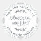 Rustikale und moderne, individuell anpassbare hausgemachte Backwaren Heidelbeermuffins Aufkleber mit dem Text aus der Küche, Heidelbeermuffine und Ihr Name in modernem Drehbuch auf weißem Hintergrund. Passen Sie diesen personalisierten Backgeschenkaufkleber einfach mit Ihrem Text, dem Produktnamen und Ihrem Namen an. Exklusiv für Sie entworfen von Happy Dolphin Studio. Wenn Sie Hilfe oder passende Produkte benötigen, kontaktieren Sie uns bitte unter happydolphinstudio@outlook.com.