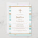 Moderne elegante Typografie Classic Gold Cross Geschlecht neutrale Taufe Einladung. Dieses Design hat ein minimalistisches rustikales boho Aquarellgold und grünen Streifen Muster. Klicken Sie auf die Schaltfläche Personalisieren, um dieses Design mit Ihren Details anzupassen. Um die Farben und Schriftart zu ändern, wählen Sie dieses Design weiter bearbeiten, um zusätzliche Optionen für die Anpassung zu öffnen.