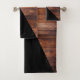Rustikale moderne schwarze diagonale u. hölzerne badhandtuch set