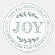 Weihnachtsfamilien rund Rücksendeadresse Aufkleber mit Ihrem Namen und Ihrer Adresse in dustig grüner Stiltypografie zeigt den Text JOY in handgeschriebener Typografie mit einer stilvollen Touch rustikalen Blattwerks. Fügen Sie einfach Ihren Namen und Ihre Adresse hinzu. Exklusiv für Sie entworfen von Happy Dolphin Studio. Wenn Sie Hilfe oder passende Produkte benötigen, kontaktieren Sie uns bitte über unseren Chat. Frohe Ferien und frohe Weihnachten!