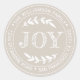 Weihnachtsfamilien rund Rücksendeadresse Aufkleber mit Ihrem Namen und Ihrer Adresse in weißer, stylischer Typografie zeigt den Text JOY in handgeschriebener Typografie mit einer stilvollen Touch rustikalen Blattwerks auf einem grauen Kiesstrand. Fügen Sie einfach Ihren Namen und Ihre Adresse hinzu. Exklusiv für Sie entworfen von Happy Dolphin Studio. Wenn Sie Hilfe oder passende Produkte benötigen, kontaktieren Sie uns bitte über unseren Chat. Frohe Ferien und frohe Weihnachten!