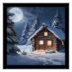 Rustikale Mondlicht Gemütliche Winterhütte Poster