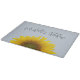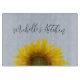 Monogramm Blumenschneidplatte, mit einer rustikalen gelben Sonnenblume auf blauem Hintergrund. Eine schöne schwarze Schrift kann mit Ihrer eigenen Nachricht personalisiert werden. Ideal, um der Küchendekoration ein wenig ländlichen Stil hinzuzufügen.