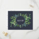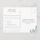 Rustikales Waldbewaldschema, marineblaue Hochzeitsrsvp mit Gesangsanfrage Postkarte. Die Karte verfügt über einen runden, grünen Rahmen in Grün- und Blautönen, Textzeilen für die Adresse, UAWG und Songs-Anfrage.