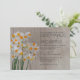 Karo diese perfekten Narzisseneinladungen für Hochzeiten in dieser Minute auf Zazzle. Genießen Sie den DIY-Stil, indem Sie diese einladende Designvorlage mit Ihren eigenen Hochzeitsinformationen und Details anpassen. Machen Sie sich keine Sorgen mit qualitativ minderwertigen Kits, indem Sie diese Narzissen Hochzeitskarten kaufen, die von einem beruflichen erstellt wurden.