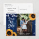 Rustikale Navy Blue Sonnenblume Save the Date Post Ankündigungspostkarte
